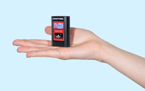 Ультракомпактный и почти невесомый (23 гр) дальномер CONDTROL Sputnik 30 легко помещается в карман и не занимает много места на полке с инструментами.
