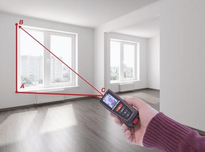 - Функция Point-to-Point. Лазерная рулетка CONDTROL Vector 80 может измерять расстояние между двумя произвольными точками в пространстве, благодаря встроенному 3D- акселерометру. Таким образом, вы сможете всего по двум замерам определить длину отрезка, проходящего сквозь здания или препятствия (стена, деревья, забор).