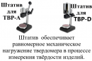 Штатив может быть приобретён совместно с дюрометром ТВР-D, либо приобретён позднее при необходимости его использования, например для массовых испытаний. Ввиду необходимости приложения нагрузки в 49,04 Н (5000 гс, что чуть менее 5 кг) при каждом замере (а таких замеров на КАЖДОМ изделии по ГОСТ должно быть не менее 5-ти для вычисления среднего значения твёрдости этого изделия) использование штатива является настоятельной рекомендацией – даже тренированному мужчине крайне тяжело произвести подряд 20…40 замеров с плавным нагружением и дальнейшим удержанием нагрузки ок. 5 кг без колебаний руки с прибором на контролируемом изделии в течение 2...15 секунд согласно требованиям ГОСТ.