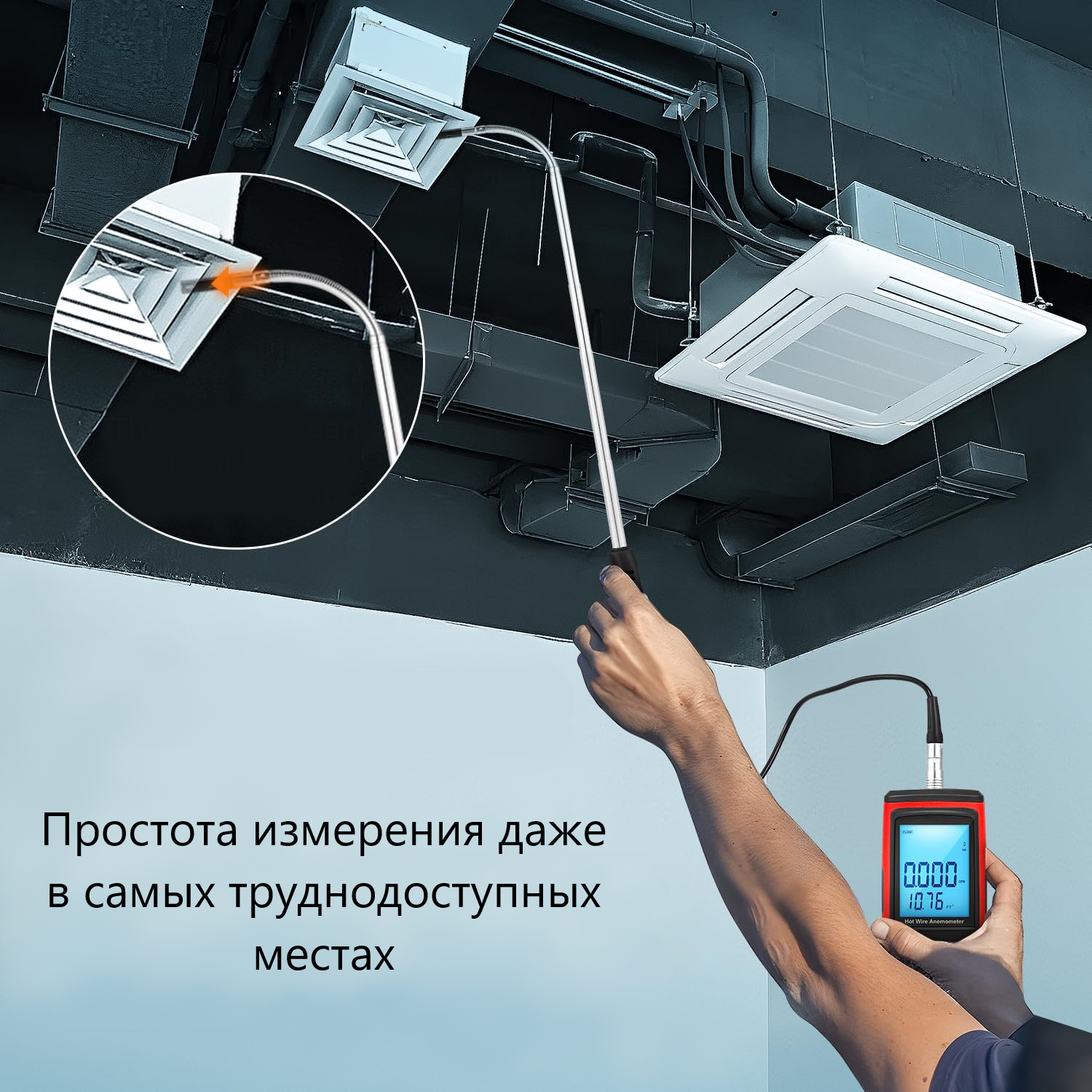 Тип оборудования: Анемометр с выносным телескопическим гибким зондом "обогреваемая струна"