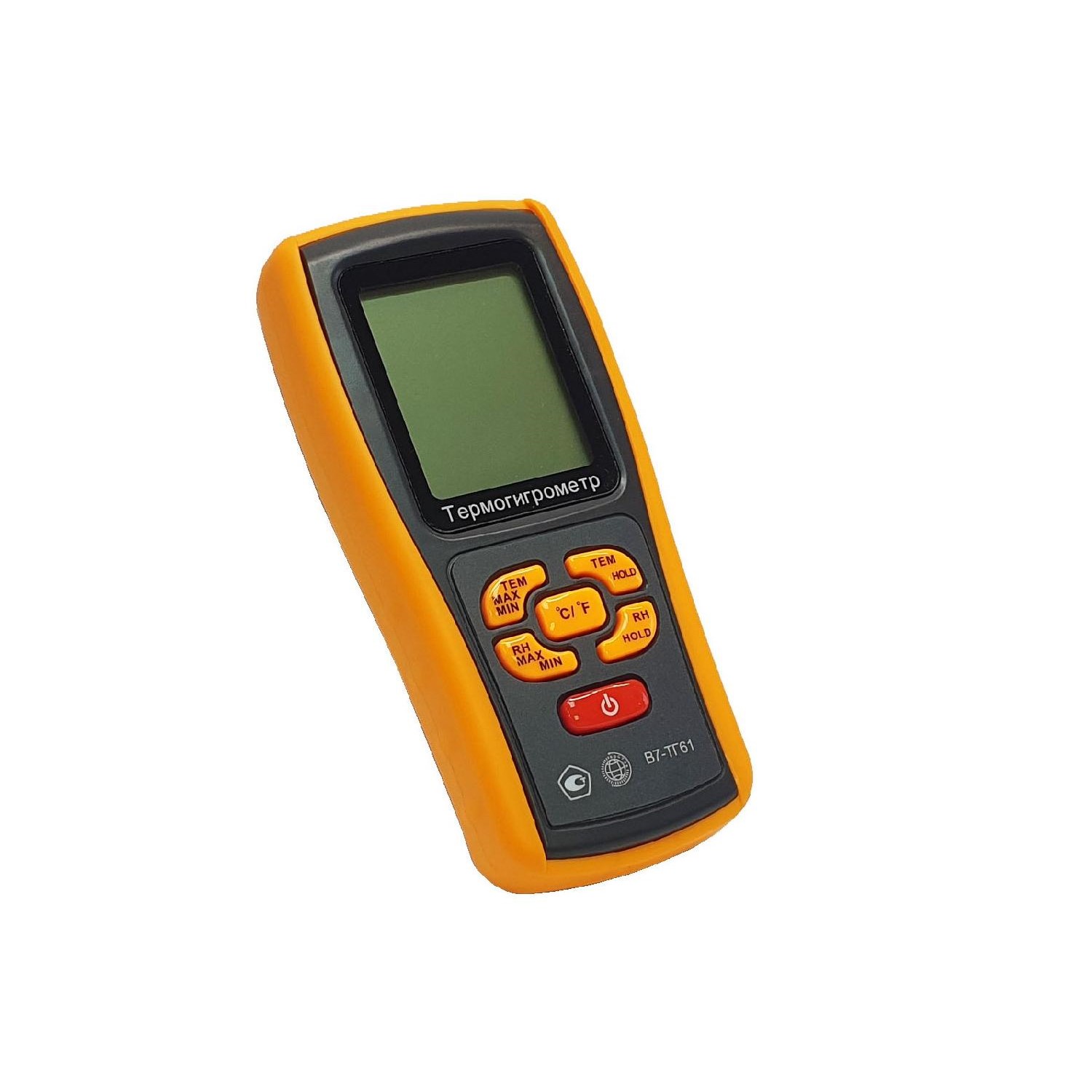Термогигрометры портативыне модификации В7-ТГ61+ представляют собой переносные многофункциональные микропроцессорные приборы. Они состоят из электронного блока со съёмным защитным резиновым чехлом, съёмного (выносного) измерительного зонда, съёмного термоэлектрического преобразователя (ТП бес-корпусного исполнения с открытым рабочим спаем) с номинальной статической характеристикой (НСХ) преобразования типа «K» по ГОСТ Р 8.585–2001. Модификация В7-ТГ61+ оснащена Bluetooth.