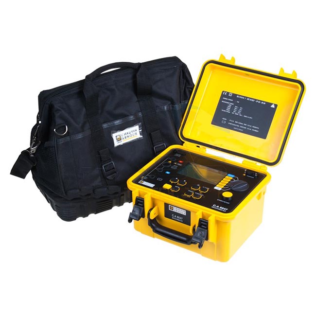 Мегаомметр C.A 6547 благодаря своему прочному корпусу, пригоден для работ в полевых условиях и на производстве и обеспечит высококачественный и точный контроль изоляции.Прибор имеет встроенный микропроцессор и позволяет измерять сопротивление изоляции до 10 ТОм при постоянном и переменном тестовом напряжении до 5 кВ, измерять емкость до 50 мкФ и остаточный ток до 3 мА.Мегаомметр С.А 6547 поставляется вместе с сумкой, в которой находятся принадлежности, призванные сделать работу профессионала максимально эффективной. Зажимы и штеккеры надежно изолированы. Длина измерительных проводов 3 м (можно дополнительно заказать провода длиной 8 и 15 м). Имеется измерительный 3-х метровый защитный электрод для устранения влияния токов утечки.Прибор имеет встроенную память и порт связи RS-232 для передачи данных из памяти в компьютер или в программу MEGOHMVIEW.