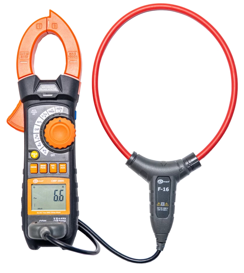 Профессиональные токоизмерительные клещи нового поколения, в сочетании новаторских решений. Гибкие токовые зажимы диаметром 160 мм обеспечивают легкое и безопасное измерение переменного тока до 3000 А. Зажим подключается к клещам с помощью кабеля длиной 170 см, что позволяет работать вдали от токоведущих частей электроустановки. Форма жестких разработана для облегчения тестирования в труднодоступных и тесных местах. В характерном выступе на верхней части губок расположен датчик бесконтактного индикатора напряжения.