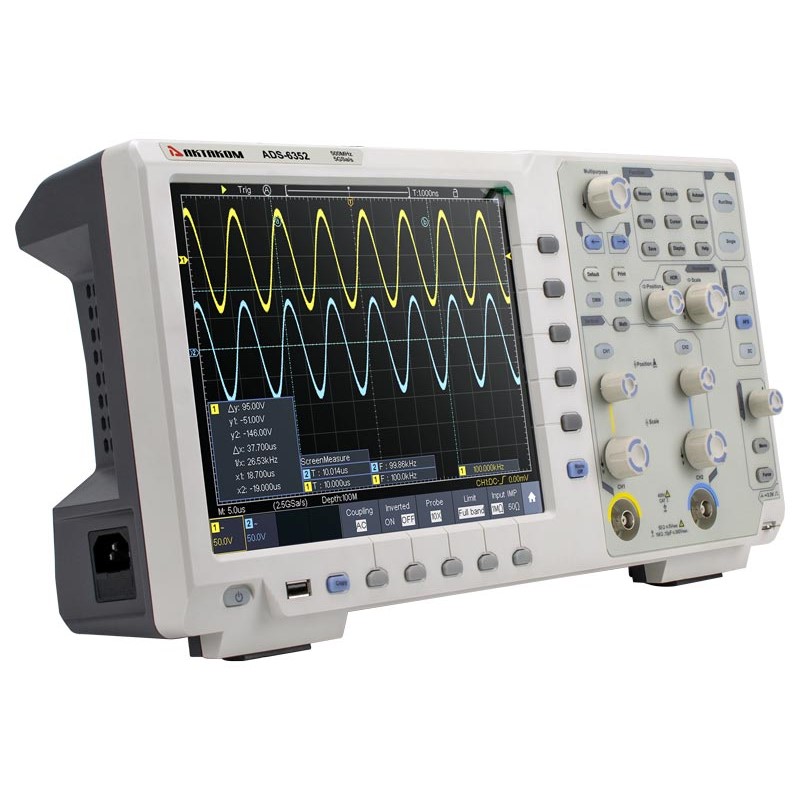 Осциллограф цифровой АКТАКОМ ADS-6332, благодаря применению новейших разработок, обеспечивает высокую функциональность и отличные технические характеристики при доступной цене. Уже в стандартной поставке в одном корпусе объединены несколько измерительных приборов: двухканальный цифровой осциллограф, анализатор протоколов (I²C, SPI, RS-232, CAN), 4½-разрядный цифровой мультиметр с функцией регистрации данных, генератор сигналов 50 МГц, анализатор спектра на основе БПФ, измеритель АЧХ (диаграммы Боде) и 6-разрядный частотомер.