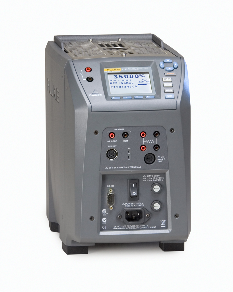Калибратор температуры сухоблочный со встроенной схемой измерений сигнала внешнего эталонного термометра сопротивления, со вставкой 9144-INSF с отверстиями: 2 шт 3 мм, 2 шт 4 мм, 1/4", 6 мм. Диапазон задания температур от 50 до 660 °C, погрешность ± 0,35 °C при 50 °C ± 0,35 °C при 420 °C ± 0,5 °C при 660 °C, стабильность ± 0,03 °C при 50 °C, ± 0,04 °C при 420 °C, ± 0,05 °C при 660 °C. Глубина термостата 150 мм, внешний диаметр 24,4 мм. Размер (В x Ш x Г) 290 мм x 185 мм x 295 мм, масса 7,7 кг.