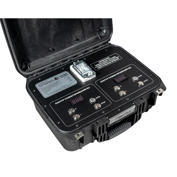 Устройство размагничивания НЕВА MD-Т2.3 — комплекс с двумя независимыми каналами, позволяющий одновременно выполнять размагничивание двух стыков трубной вставки. Каждый канал оснащён отдельным силовым модулем, универсальной обмоткой, беспроводным пультом управления с индикатором магнитного поля и соединительным кабелем для подключения обмотки.