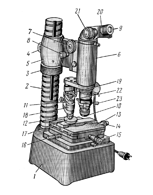 Источник вторичного электропитания (блок питания) + осветитель вместе с лампой. |