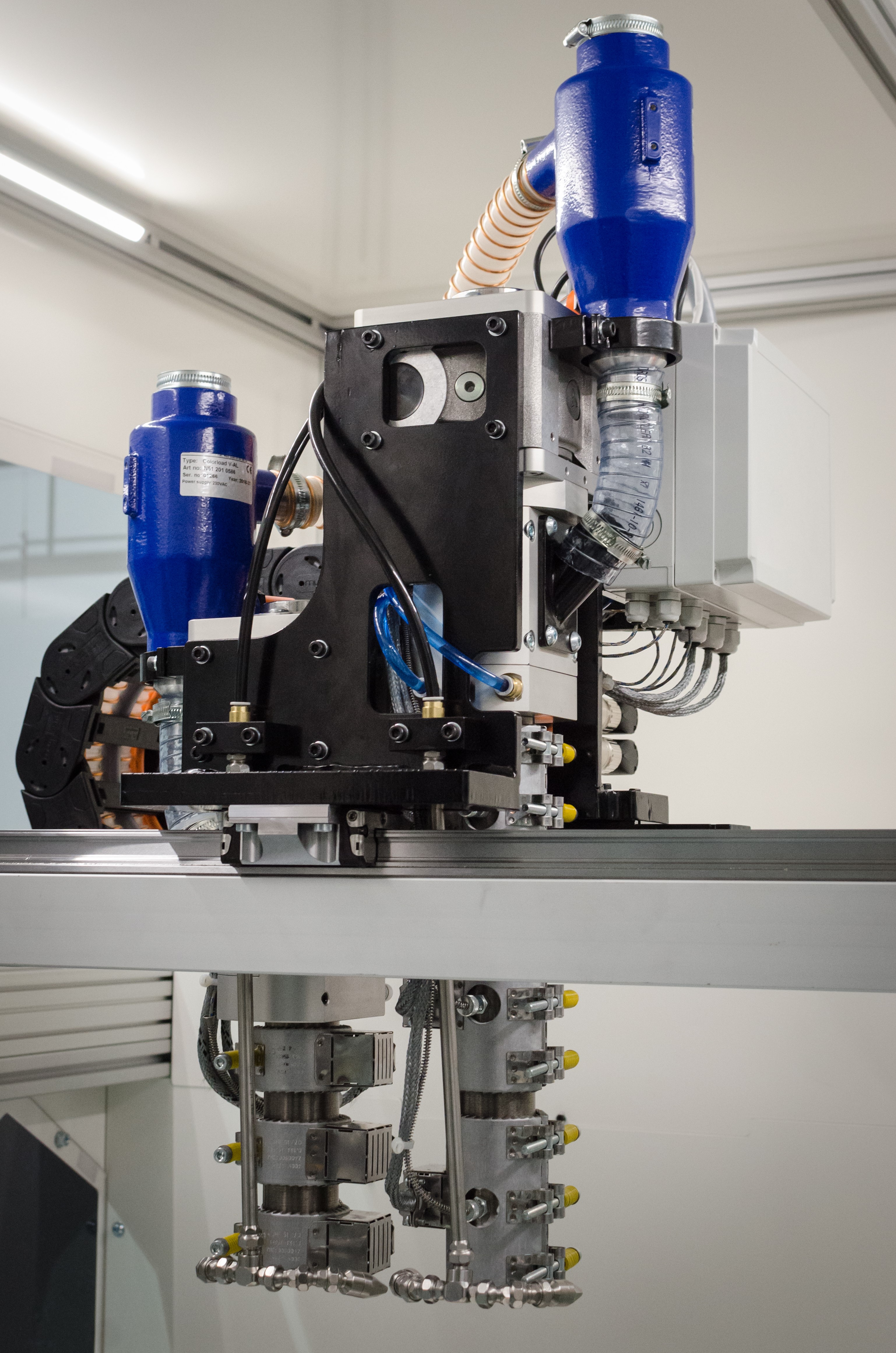Сменные сопла, программное обеспечение обеспечивают быструю перестройку на сопла разного диаметра. Это позволяет сделать выбор между максимальной скоростью или максимально гладкой поверхностью. Протестированы следующие размеры сопел: 0.6 мм, 1 мм, 2 мм, 3 мм, 4 мм, 5 мм, 6 мм, 7 мм и 8 мм.