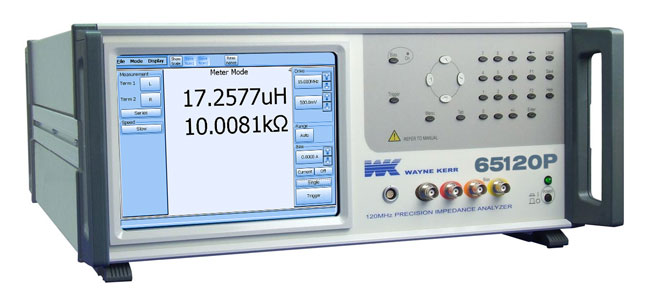 Прецизионный ВЧ измеритель WK 6510Р: Диапазон частот 20 Гц - 10 МГц (разрешение 0,01 мГц); Базовая погрешность 0,05 %; Сопротивление (R, Z) 0,01 мОм … 2 ГОм; Емкость 1фФ … 1Ф; Индуктивность 0,1 нГн … 2 кГн; Фазовый сдвиг -180 … +180o; Добротность (Q) 0,00001 … 1000; Тангенс угла потерь (D) 0,00001 … 1000; Реактивное сопротивление (X), комплексная проводимость Y (адмитанс), проводимость (G), реактивная проводимость (B); Интерфейс USB (Подключение клавиатуры, мыши, внешних носителей), VGA, LAN, GPIB; Запись/считывание профилей (20 ячеек); TFT сенсорный дисплей 640 х 480; Масса 14,5 кг.