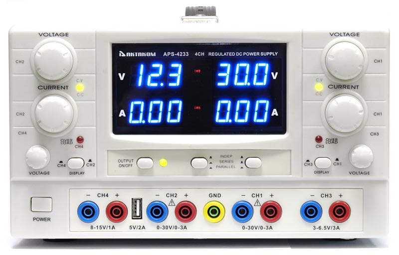 Лабораторный источник питания АКТАКОМ APS-4233 выдаёт плавно регулируемое стабилизированное напряжение и стабилизированный ток. Благодаря высокой точности установки выходных параметров и доступной цене, лабораторный источник питания АКТАКОМ APS-4233 является превосходным выбором для использования в процессах ремонта или наладки электронного оборудования, а также для оснащения исследовательской лаборатории или производства.