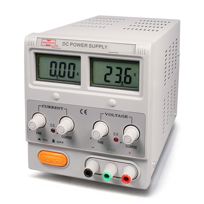 Лабораторные блок питания Mastech HY3003 обеспечивает питание электронных устройств и схем постоянным напряжением в диапазоне от 0 до 30 Вольт и током в диапазоне от 0 до 3 Ампер. Он отличается от модели Mastech HY3002 только значением максимального тока вторичной цепи в 3 Ампер. Регулировка параметров осуществляется потенциометрами. Для каждого параметра отведено по два регулятора (ГРУБО / ТОЧНО). Выходные значения тока и напряжения контролируются на 3-разрядных LED-индикаторах красного цвета. В источнике питания Mastech HY3003 предусмотрена защита от короткого замыкания во вторичной цепи. В случае срабатывания защиты загорается соответствующие светодиодные индикаторы ограничения по току или по напряжению.