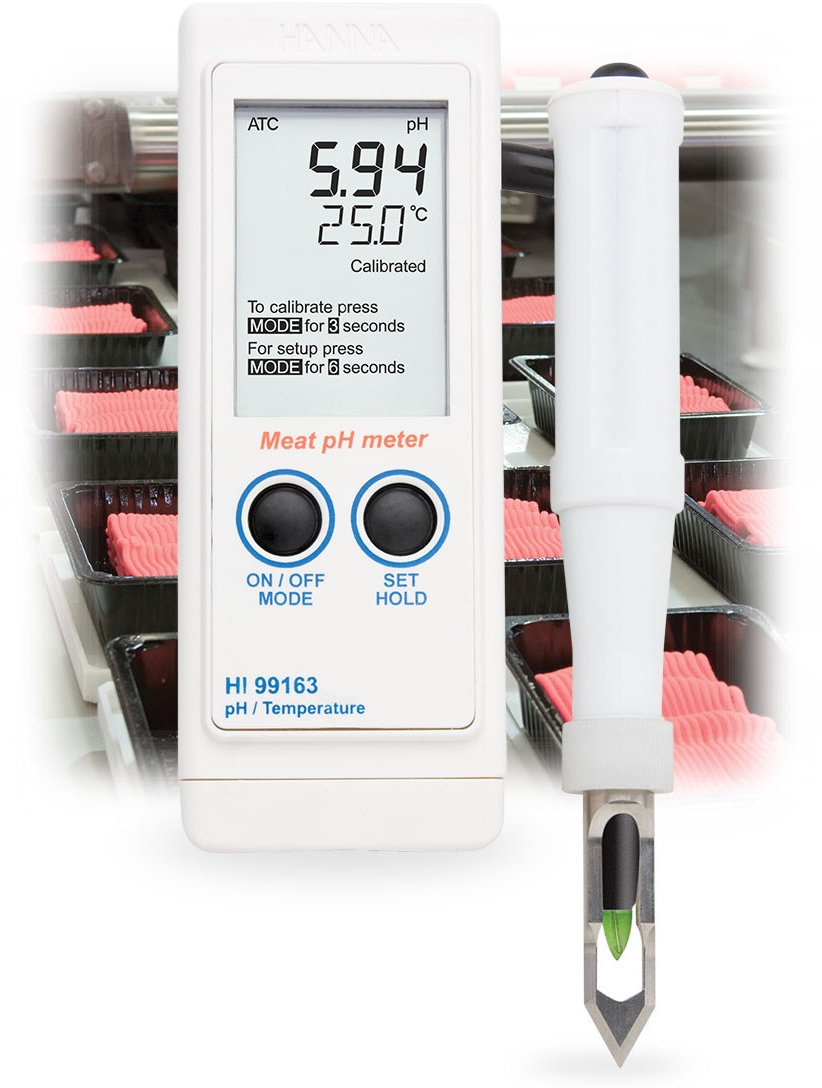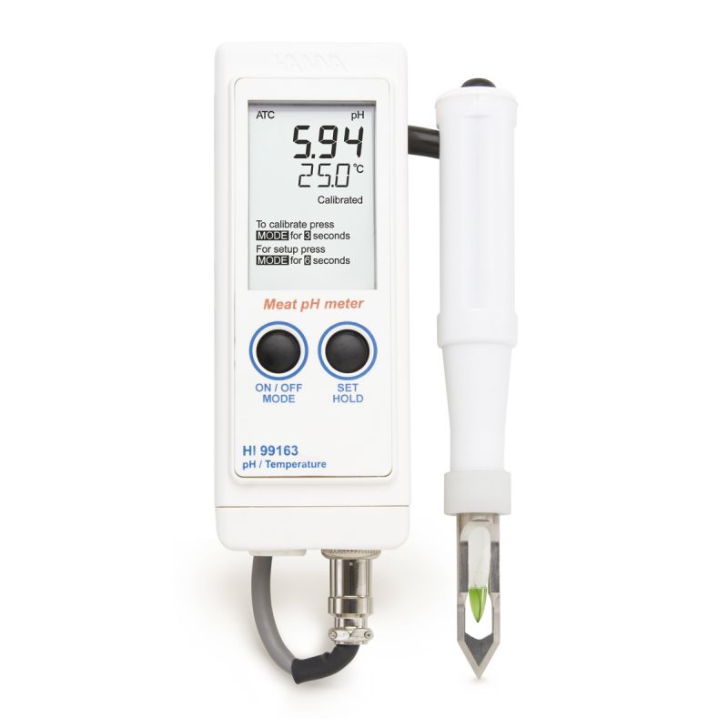 HI 99163 портативный микропроцессорный прибор с выносным (сменным) электродом для измерения pH и температуры мяса. С автоматической калибровкой pH и термокомпенсацией.