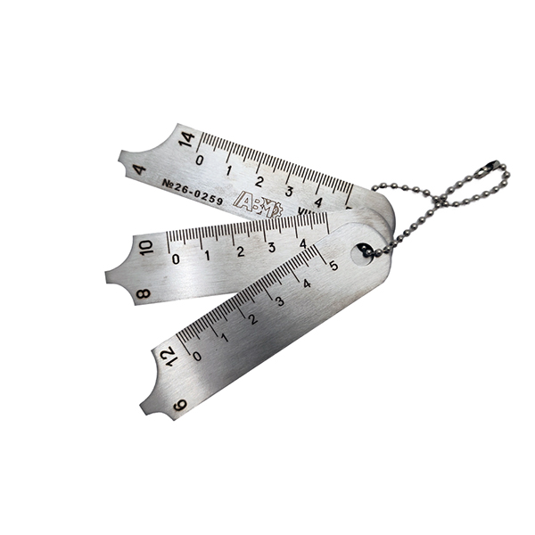 Измерение выполняется ступенчатым методом: специалист поочередно прикладывает лепестки к сварному шву, подбирая тот, чья выточка максимально точно совпадает с профилем катета при минимальном зазоре. Использование кислотостойкой нержавеющей стали обеспечивает устойчивость инструмента к коррозии и воздействию агрессивных сред, что позволяет применять его как в производственных условиях, так и на открытых площадках.