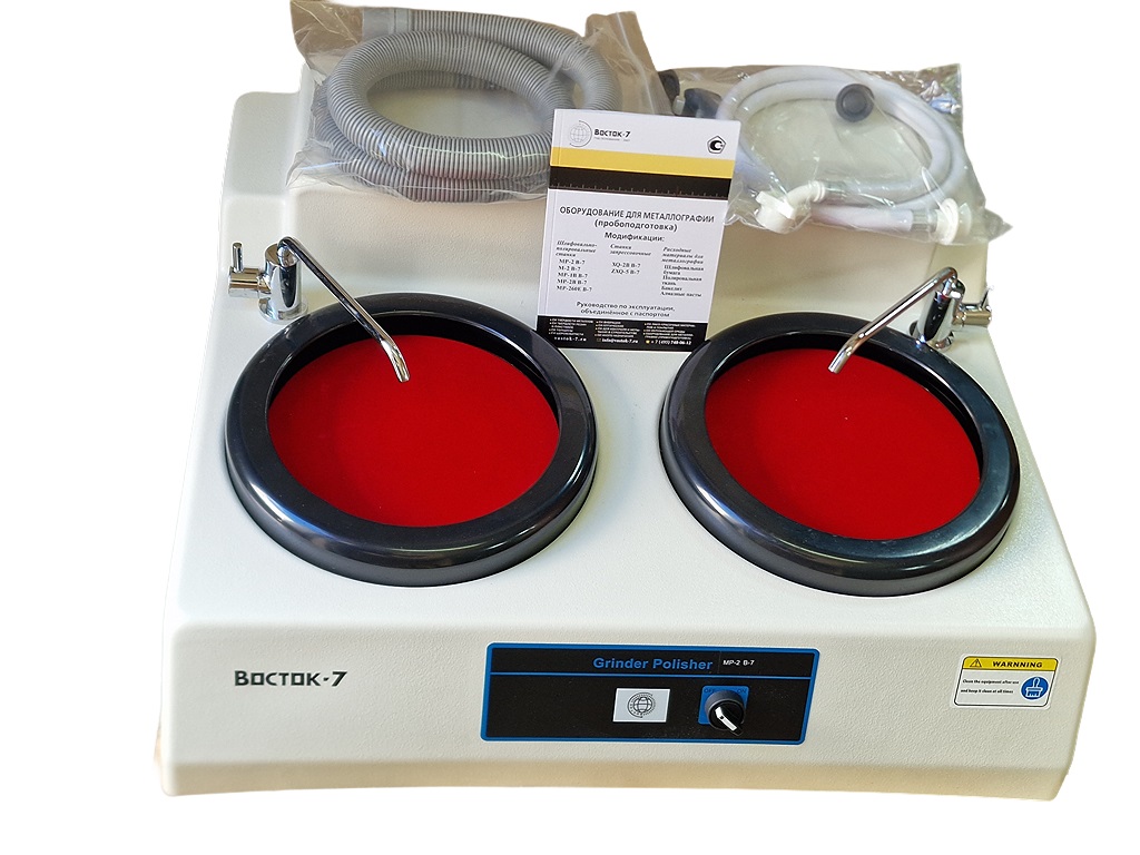 MP-2 В-7 позволяет осуществлять полный цикл подготовки образца к дальнейшему исследованию в рамках своих технических возможностей: начиная от грубой шлифовки, заканчивая окончательной полировкой образца.