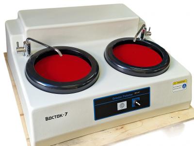 скорость левого диска для шлифования составляет 450 об/мин, а правого – полировального – 600 об/мин.