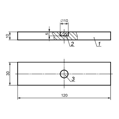 Образец представляет собой стальной брусок размером 120х30х10мм, на котором выполнен один искусственный дефект в виде плоской несплошности материала.