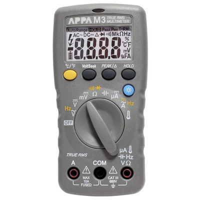Измерение переменного (АСV) и пост. напряжения (DCV) до 600 В, переменного и постоянного тока до 10А (М2, М3), частоты, скважности (%), емкости, сопротивления до 40 МОм, температуры -40… +400 °С (М3), испытание p-n переходов, проверка целостности цепи (прозвонка со звуковой и световой сигнализацией)