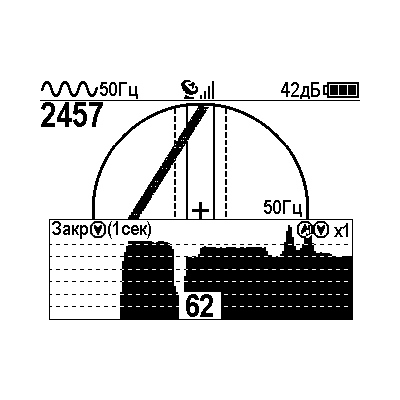 Режим «График» - на индикаторе дополнительно с положением трассы отображается график изменения уровня сигнала на рабочей частоте.