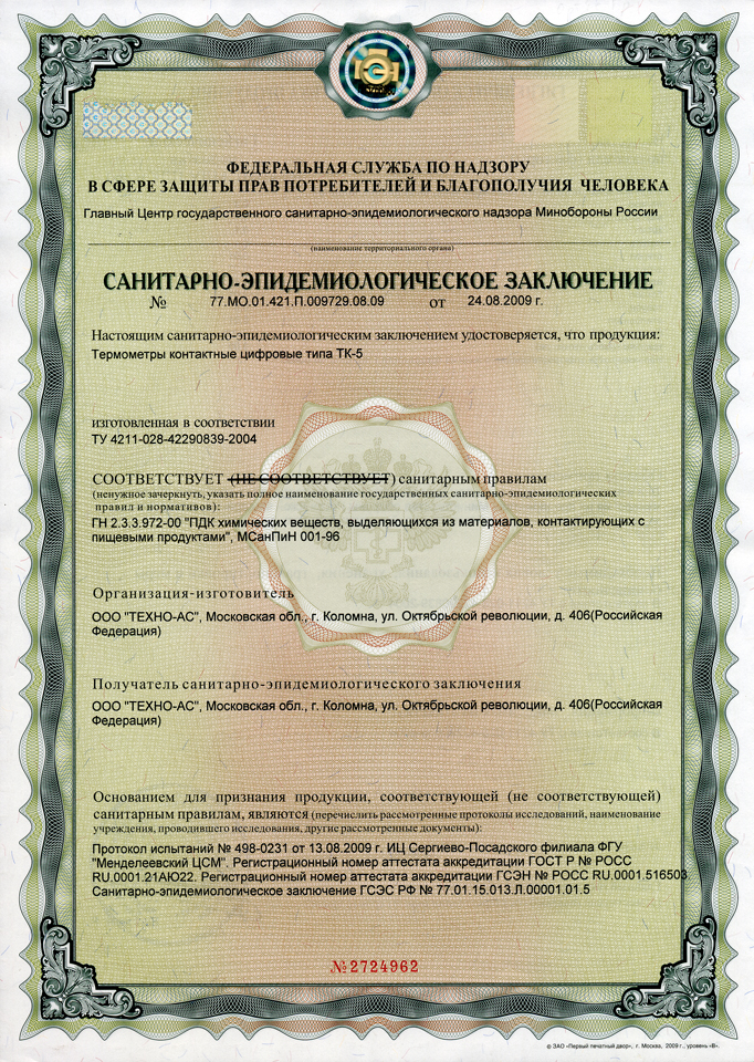 Гарантия на термометр контактный ТК-5.01П: 24 мес.