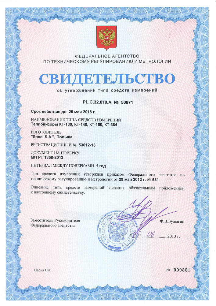 Тепловизор KT-384 v13 - 400 050 руб. с первичной поверкой, 385 050 руб. без поверки.