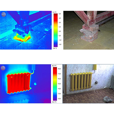 Комплекс максимально адаптирован к задачам оперативного обследования строительных конструкций. С помощью него можно найти как скрытые дефекты теплоизоляции, так и прохождение трубопроводов в стенах и полах. В случае повреждения трубопроводов и возникновении течи, он быстро поможет найти место возможной утечки, что неоднократно было проверено на практике.