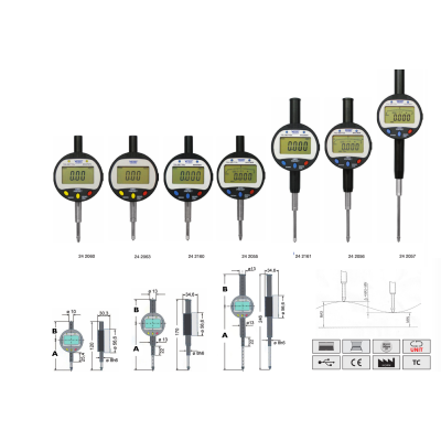 Индикаторы Vogel цифровые с выводом данных, диапазон от 0-12,7х0,01/0,001 мм до 0-50,8х0,01/0,001 мм, предназначены для определения линейных размеров деталей, расположения поверхностей и отклонения формы. Принцип действия индикаторов довольно прост: линейное перемещение стержня головки, который находится в непосредственном контакте с измеряемым предметом, преобразуется при помощи определенного типа механизма (рычажного, зубчатого, рычажно-зубчатого, пружинно-оптического или пружинного) в отклонение стрелки устройства. Все измерительные головки имеют собственное обозначение, которое зависит от основного механизма и указывается в маркировке.
