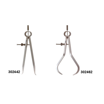 Кронциркули Vogel с регулировкой, диапазон от 100 мм до 500 мм, для внутренних или внешних измерений, предназначены для внешних и внутренних измерений размеров объемных предметов – деталей или изделий. Как правило, ножки такого циркуля изогнуты в форме дуги для повышения точности измерений и более удобной работы с инструментом. Рабочие окончания ножек кронциркуля (так называемые губки) обычно закаливаются и шлифуются, а для того чтобы движения инструмента были более плавными, ставится прокладка в виде латунной шайбы. Кронциркули различаются по виду измерений (для наружных, внутренних, универсальные), по диапазону измерений, цене деления, форме колков и некоторым другим параметрам.