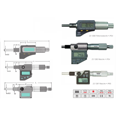 Микрометрические головки Vogel цифровые, диапазон измерений от 0-25х0,001 мм с пыле-влагозащитой IP 54 и IP 65, предназначены для измерения глубин отверстий, пазов, выемок, высоты уступов. Применяются, в основном, в производственных целях.
