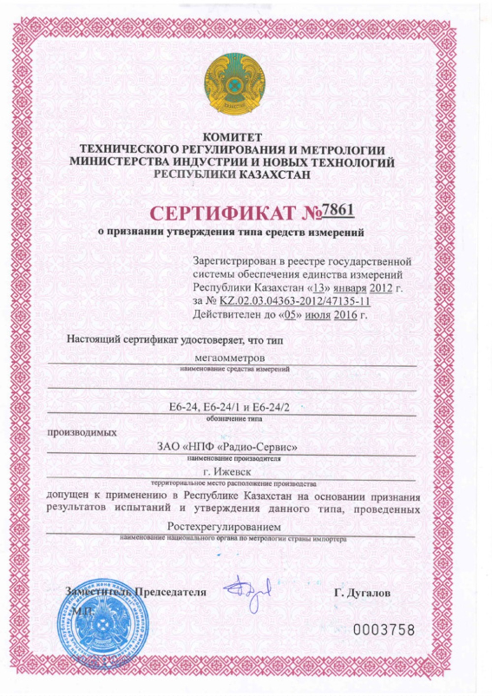 Мегаомметр Е6-24/2 внесен в Госреестр средств измерений РФ под № 38428-08