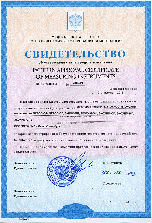 Дозаторы внесены в государственный реестр средств измерений под № 35528-07 и имеют медицинское Регистрационное Удостоверение № ФСР 2007/00097. Все дозаторы проходят обязательную первичную поверку (В комплект каждого дозатора входит индивидуальное свидетельство о поверке) и сопровождаются гарантийным и послегарантийным обслуживанием.