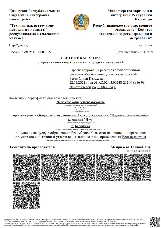 Сертификаты, свидетельства и разрешения на ультразвуковой дефектоскоп УД2-70: