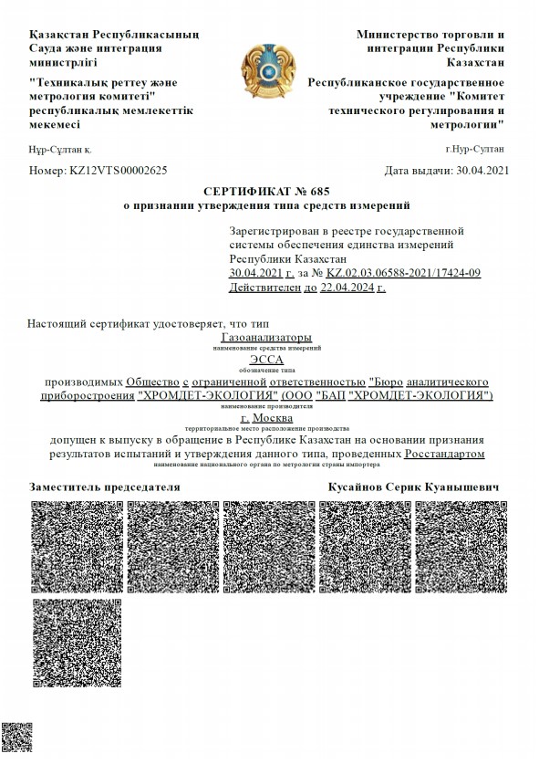 Гарантия на СТАЦИОНАРНЫЕ ГАЗОАНАЛИЗАТОРЫ ЭССА-NO2 ИСПОЛНЕНИЕ БС/(И)/(Р)/(Н): 12 месяцев