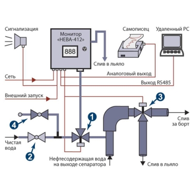 СИГНАЛИЗАТОР «НЕВА-412» предназначен для непрерывного контроля содержания нефтепродуктов после сепараторов льяльных вод и управления сбросом нефтесодержащих вод с судов, оборудованных фильтрующими установками независимо от класса автоматизации.