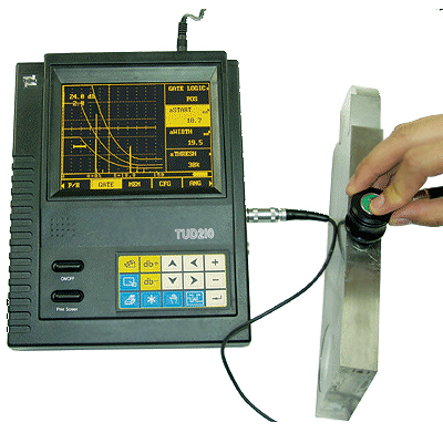 Дефектоскоп TUD 210 легок в использовании, прочен и доступен по цене. TUD 210 может быстро и точно обнаруживать неразрушающим методом различные дефекты (трещины, примеси, воздушные пустоты, неоднородности). Дефектоскоп TUD 210 широко используется в производственных и лабораторных условиях. Дефектоскопы TUD210 находят применение в инспекционном контроле и контроле качества продукции, при сварочных работах, при обработке материала и в нефтехимической промышленности. Дефектоскоп TUD210 также используется для контроля безопасного состояния и оценки надежности узлов в аэрокосмической промышленности, в железнодорожной сфере, при контроле сосудов давления.