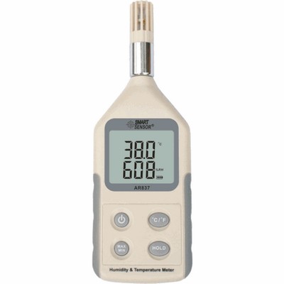 Компактный цифровой влагомер AR837 представляет из себя портативный измеритель уровня влажности и температуры воздуха. AR837 обладает набором стандартных функций и может использоваться в промышленных, лабораторных и бытовых условиях как в целях профессионального применения, так и для любых других прикладных целей. Электронный влагомер имеет компактные размеры и оснащен встроенным температурным датчиком и датчиком влажности.