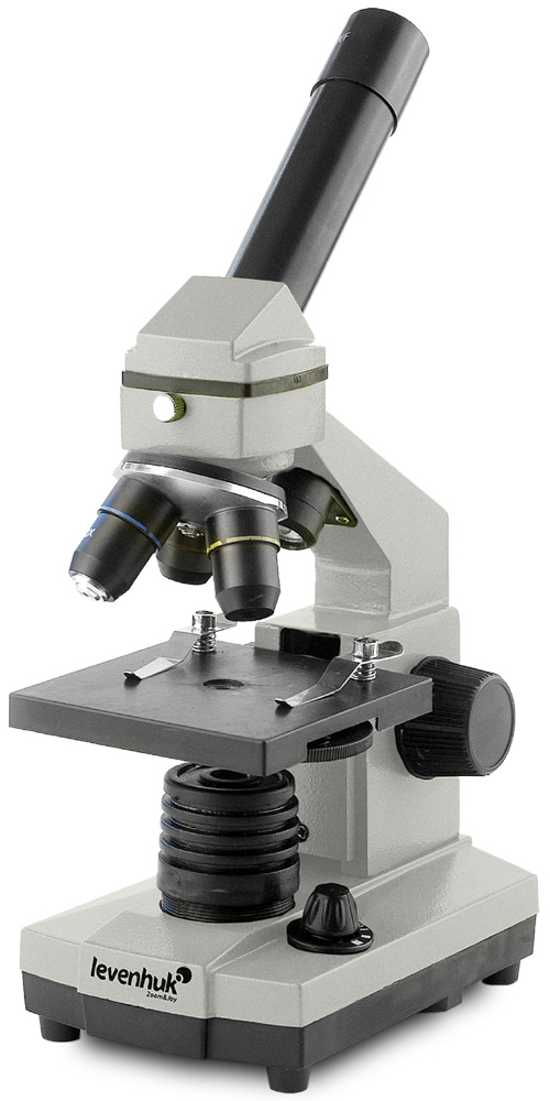 Линзы изготовлены из качественного оптического стекла и покрыты специальным просветляющим составом. Микроскоп дает контрастное и четкое изображение – в него можно увидеть много деталей микроскопических объектов. Три объектива позволяют получить увеличения 40, 100 и 400 крат. Для смены кратности достаточно просто повернуть револьверное устройство.