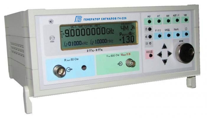 Генератор Г4-226 – настольный цифровой прибора СВЧ диапазона. Предназначен для использования в качестве источника сигнала при регулировании, ремонте и поверке радиоэлектронной аппаратуры различного назначения, а так же для использования в качестве встраиваемых гетеродинов в сложных автоматизированных радиоизмерительных системах.